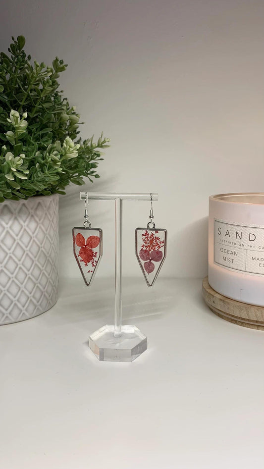Resin Framed Earrings - With Dried Red Flowers in Silver or Gold Frames