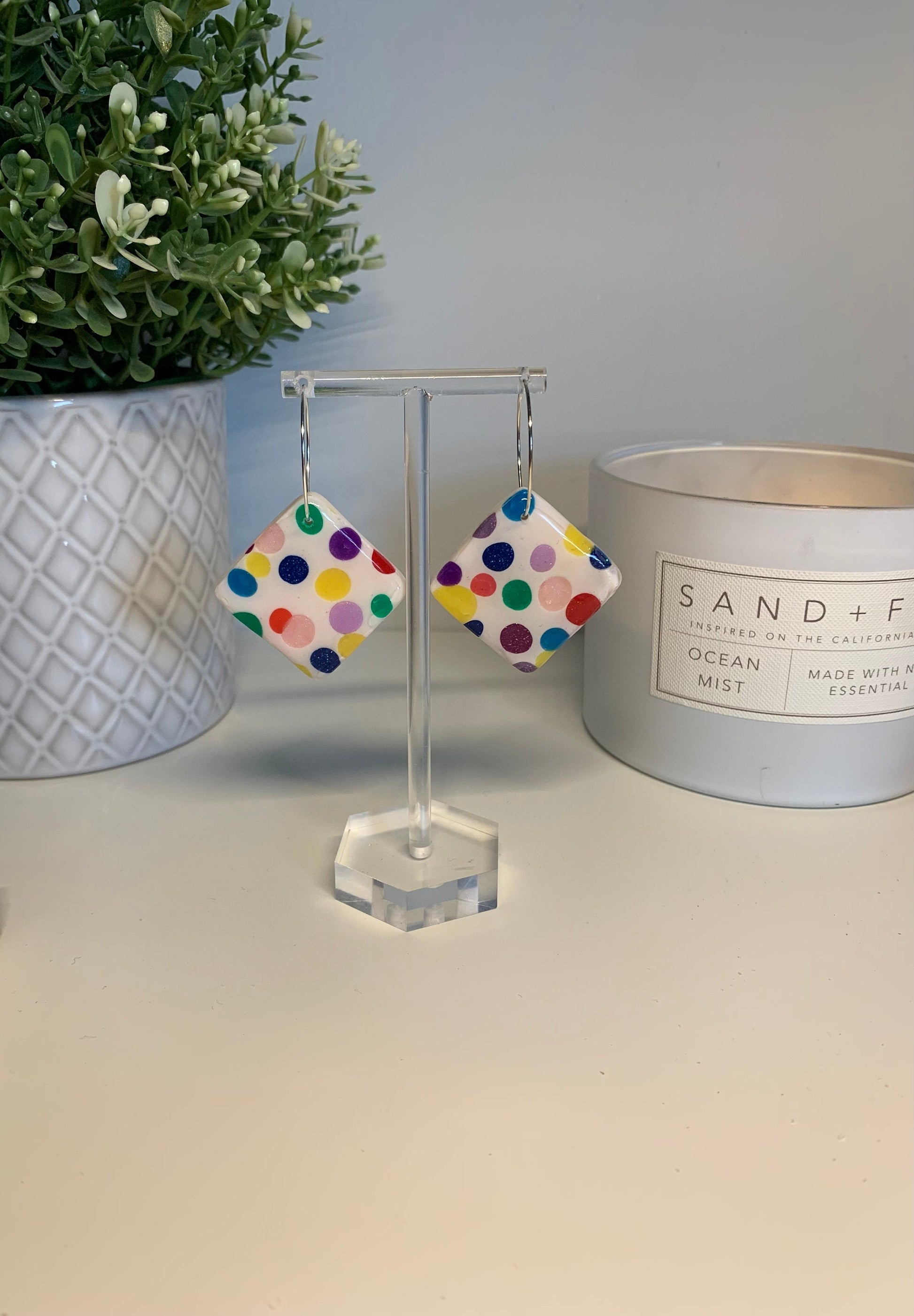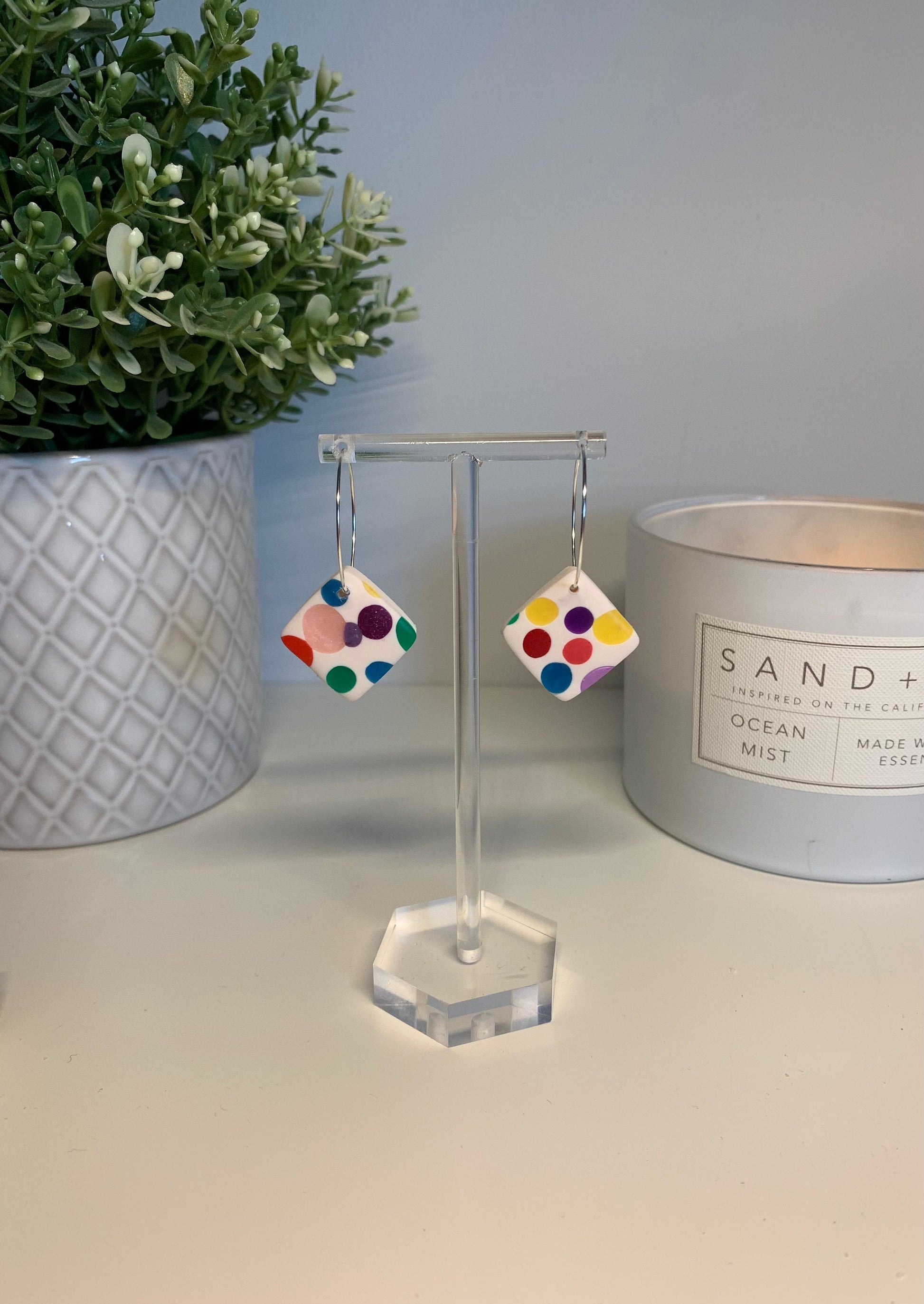 Polymer Clay Earrings - Bright Polka Dots