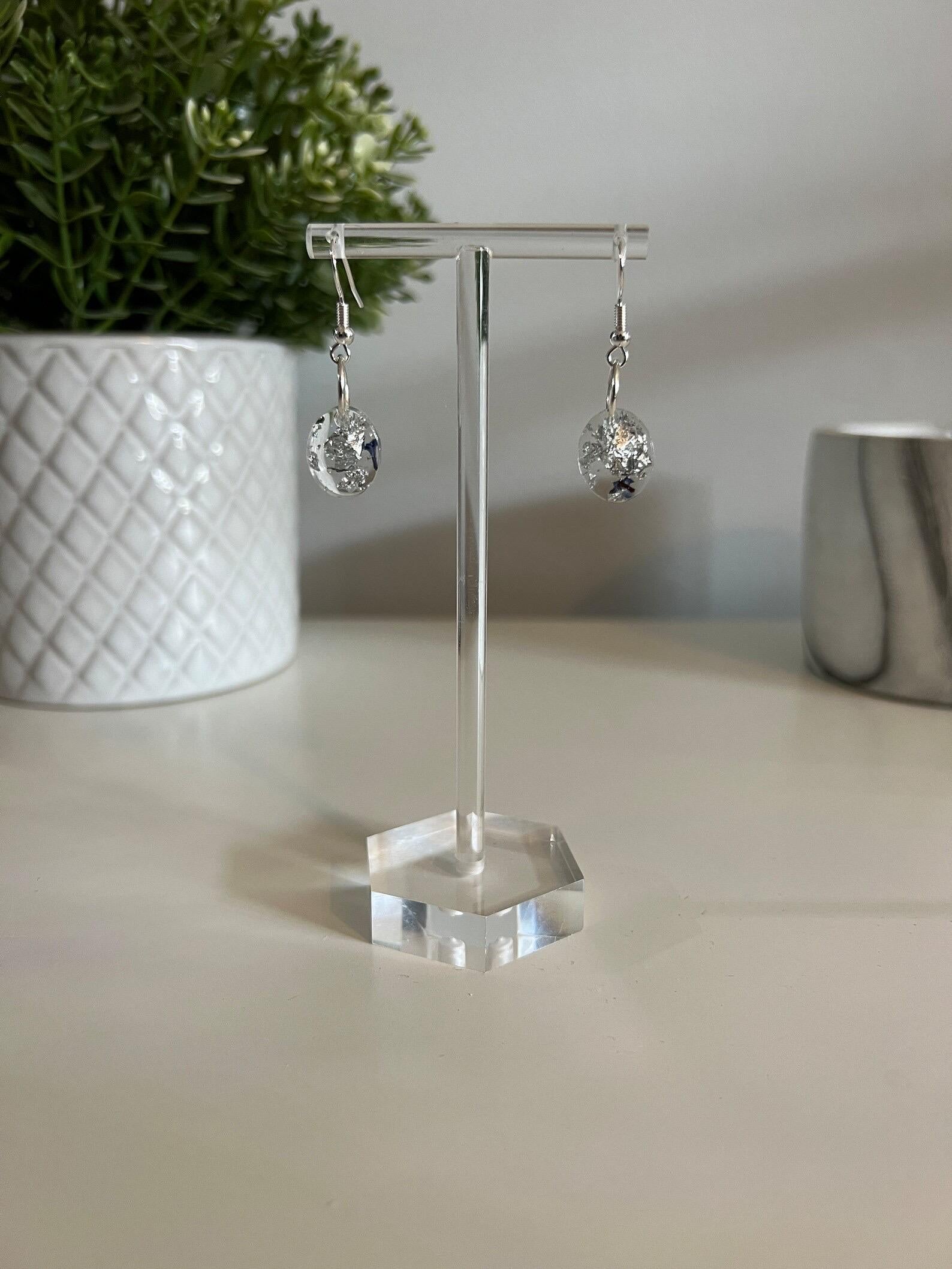 Small Earrings - With Pressed Flowers, Silver or Gold Foil in a Range of Shapes